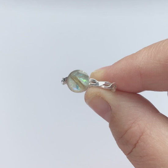 Our Aquarius ring has a beautiful hammered crossover band and dainty 7mm bezel. As every ring is lovingly hand crafted each one will be totally unique.