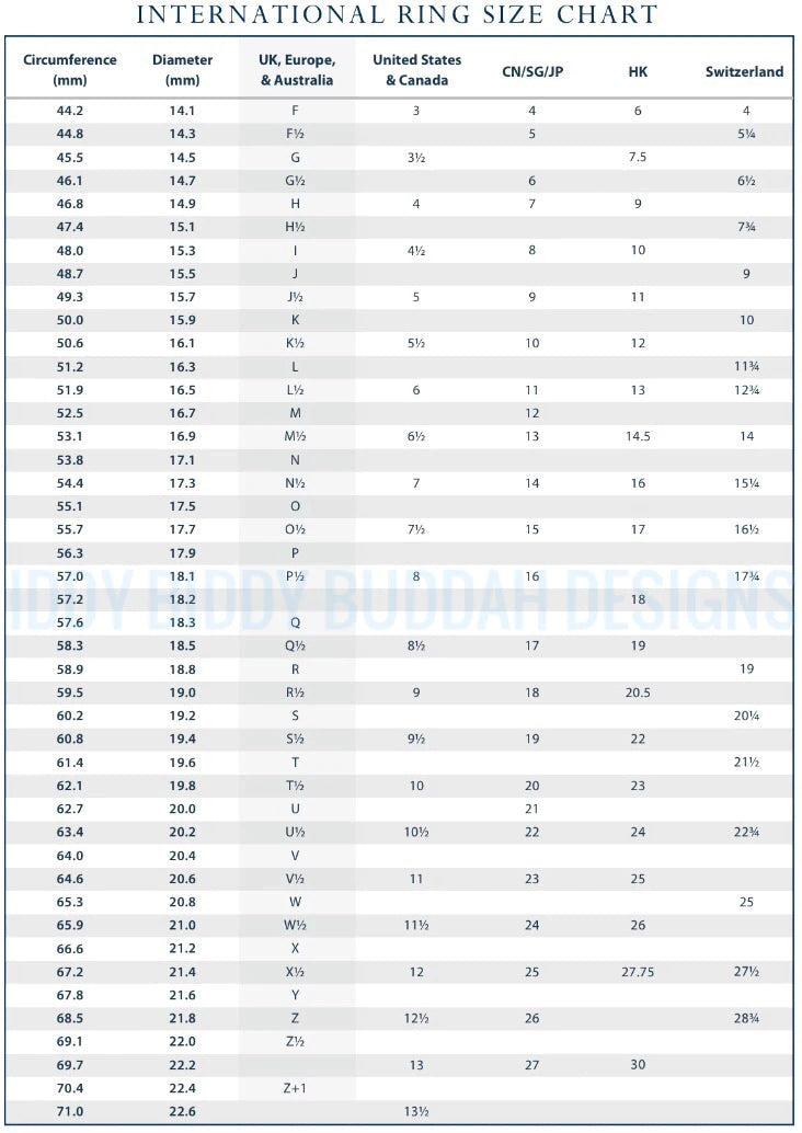 Most local jewellers will offer a free finger measuring service. If you prefer to find your ring size at home this is a very useful link.