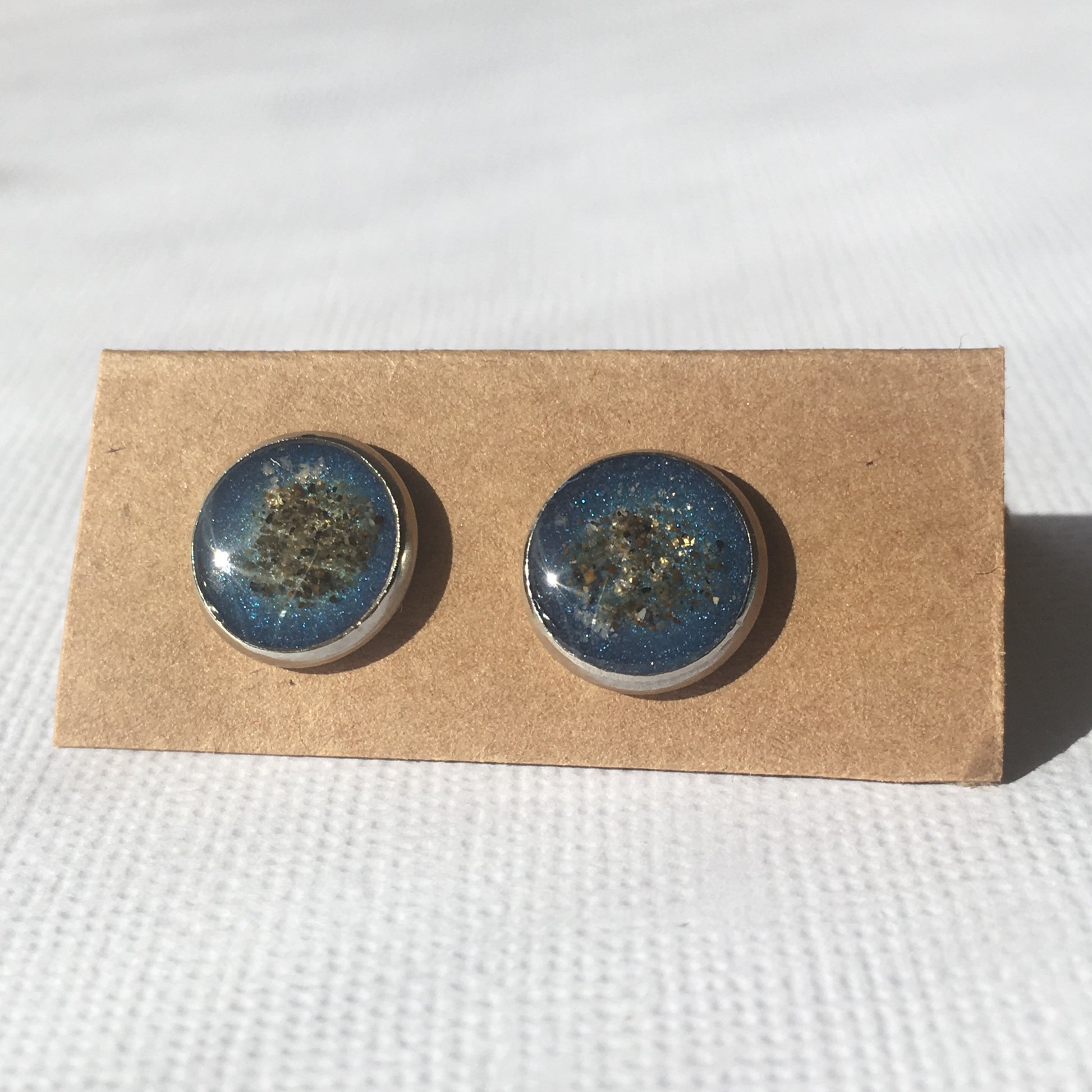 These hypoallergenic stainless steel earrings contain sand from our beautiful NZ beaches, set in jewellery grade resin along with stunning tints and metallic flecks.