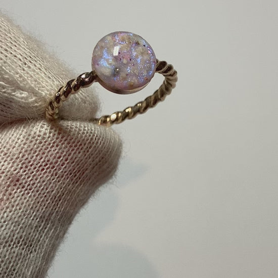 Our delicate Ottillie rings are 14k gold filled stacking rings, perfect for keeping your precious elements preserved and close by at all times. From locks of baby hair & preserved breastmilk to cremations ashes & fragments of clothing, we can make something special to include any of your treasured items.