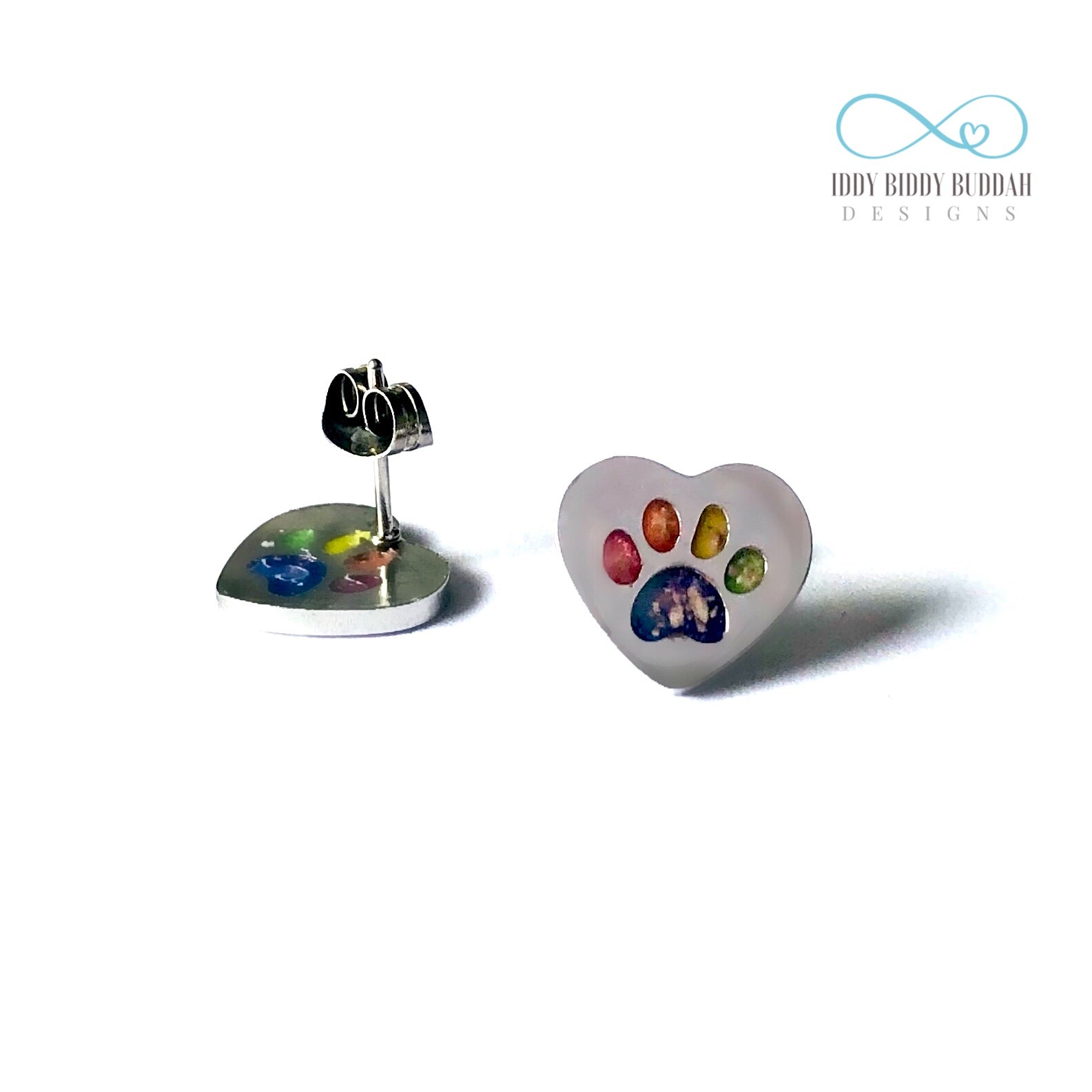 These pretty heart paw print earrings are a perfect way to remember your beloved pet.