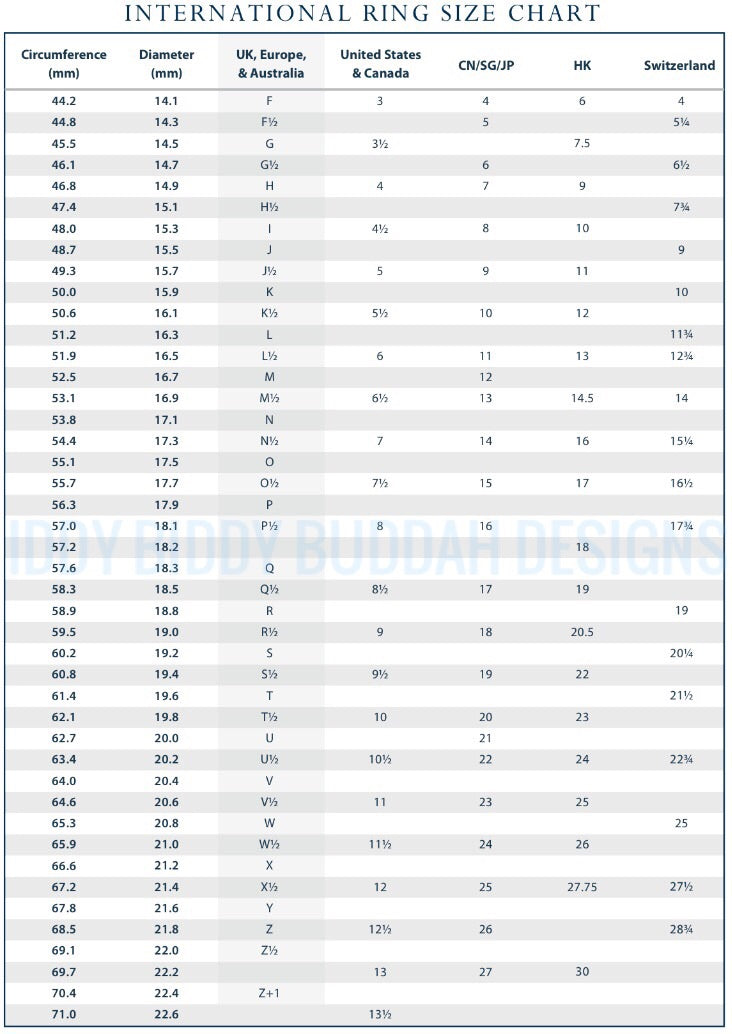 Most local jewellers will offer a free finger measuring service. If you prefer to find your ring size at home this is a very useful link.